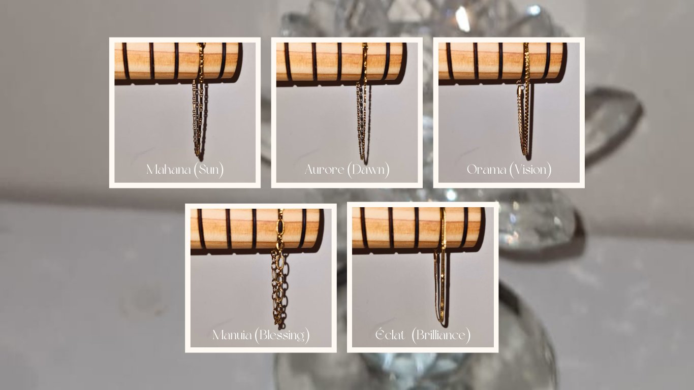 Inspired by the Tahitian words "Here" (love) and "Fenua" (earth/land), this collection symbolizes enduring style and deep connection.